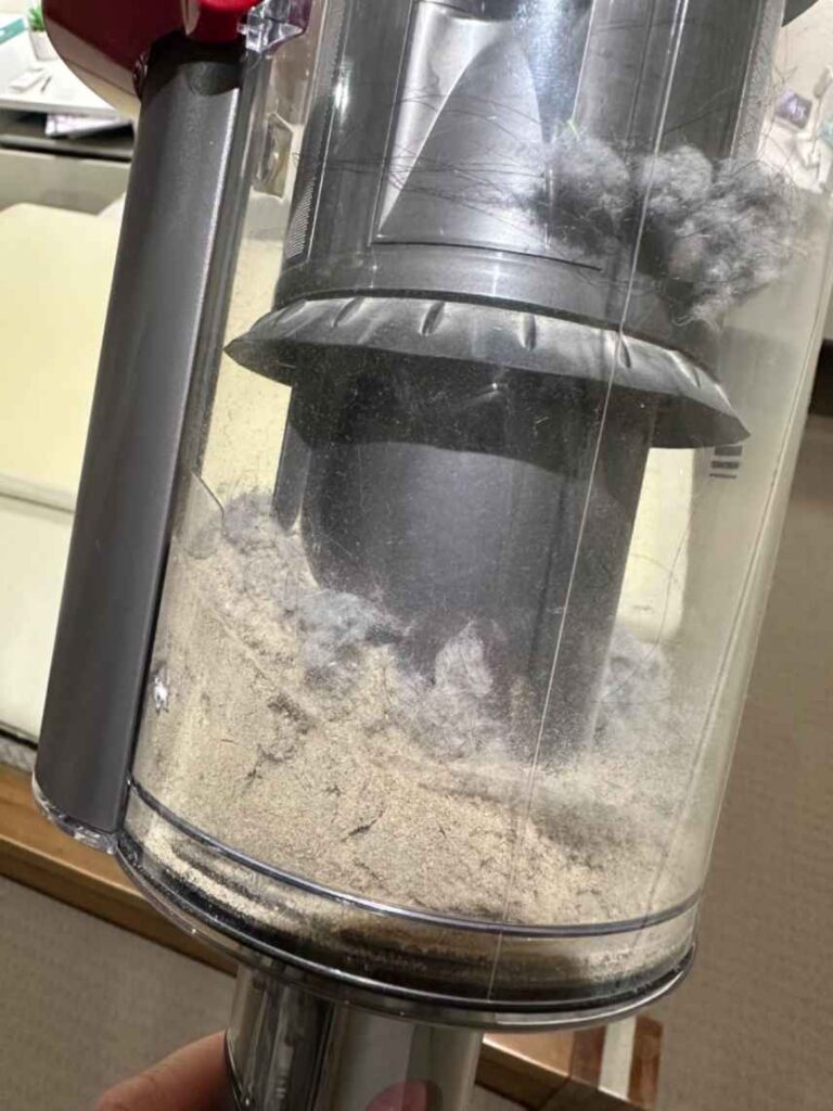 Sur le terrain, le Dyson Gen5 Detect Absolute confirme son statut de référence. L’aspiration est puissante et constante, aussi bien sur sols durs que sur tapis et moquettes. Les poils d’animaux, cheveux et poussières fines sont efficacement capturés, sans perte notable en bord de murs.